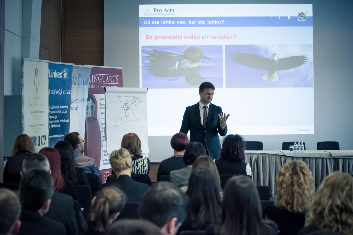Predavanja smo zaključili z živahno predstavitvijo Janeza Hudovernika, direktorja podjetja Pro Acta, ki nam je povedal »KAKO REKRUTIRATI ZMAGOVALCE V PRODAJNI EKIPI« in nam predstavil metodo Persolog vedenjski profil DISK®, ki pokaže vedenjske lastnosti kandidata na določenem delovnem mestu ter nam pomaga ugotoviti afiniteto osebe do določenega področja.
